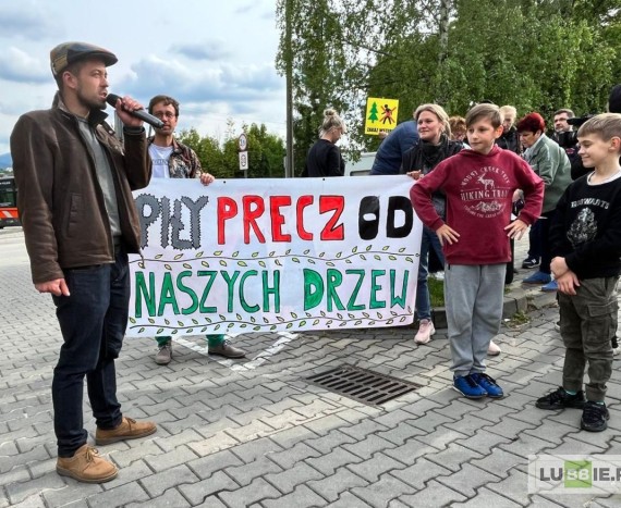 Na parkingu przy ulicy Kreciej w piątkowe popołudnie zebrało się kilkadziesiąt osób. – Jesteśmy tu, bo deweloper budujący kolejne bloki na naszym osiedlu chce poszerzyć drogę, a przy okazji chcą wyciąć piętnaście naszych drzew – mówił do zgromadzonych jeden z inicjatorów protestu, Maciej Szwagrzyk.