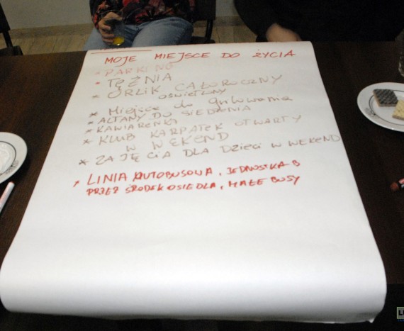 To jednak nie wszystko. Po południu miała miejsce druga część wydarzenia. Zaczęło się od krótkiej prezentacji multimedialnej związanej tematycznie z roślinami i drzewami. Potem dla dzieci przygotowano gry i zabawy integracyjne, a dla dorosłych zajęcia typu work cafe. Przy trzech stolikach tematycznych ekipy zmieniały się co 10 minut zapisując na arkuszach swoje przemyślenia na tematy: