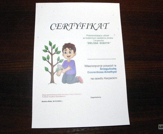 Na zakończenie każdy sadzący drzewo otrzymał stosowny certyfikat.